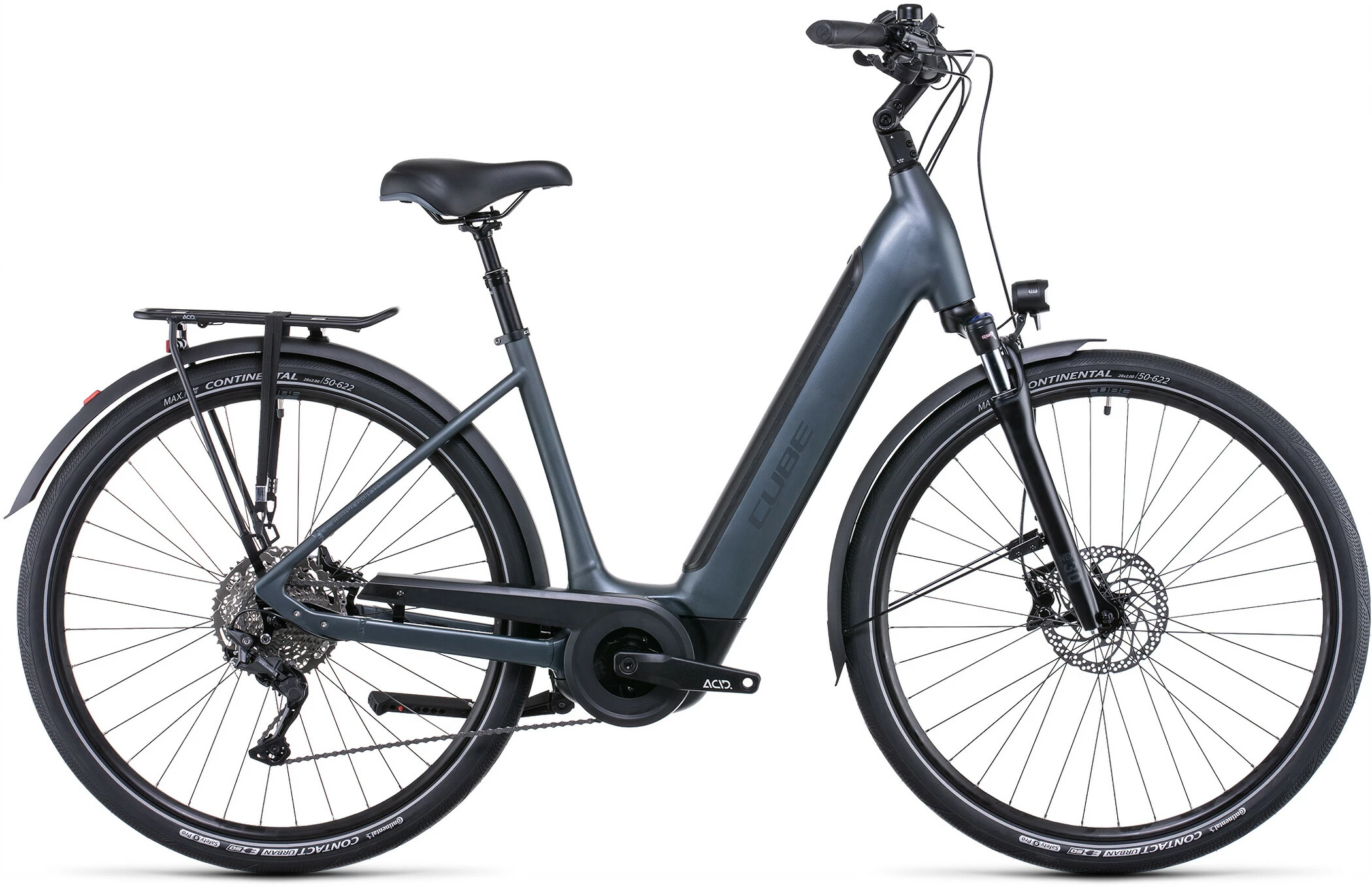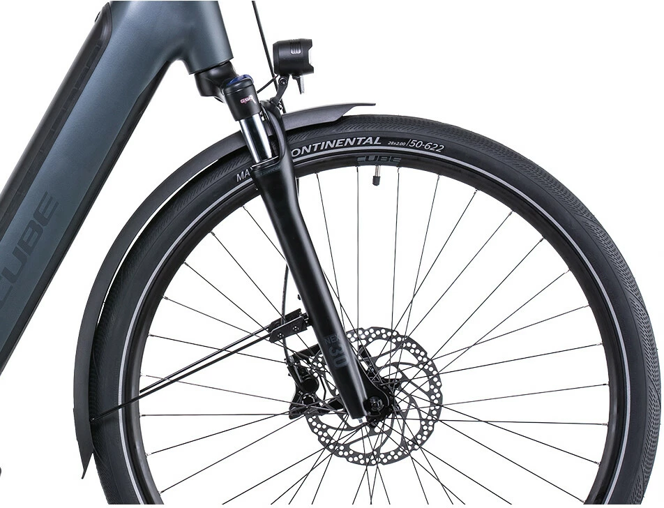 An urban hybrid should slot into your life seamlessly. That’s why, with the Town Sport Hybrid Pro, Cube included a semi-integrated carrier and a full complement of practical accessories, so you can just add your belongings and go. Easy-shifting Shimano 10-speed gears have a wide range which, combined with the smooth power delivery of Bosch’s third-generation motor, will make light work of any route. Powerful hydraulic disc brakes – with four pistons at the front – and grippy, comfortable Continental tyres make it easy to slow and stop safely, whatever the weather. And the suspension fork – with lockout – and suspension seatpost help smooth the way on rough roads.