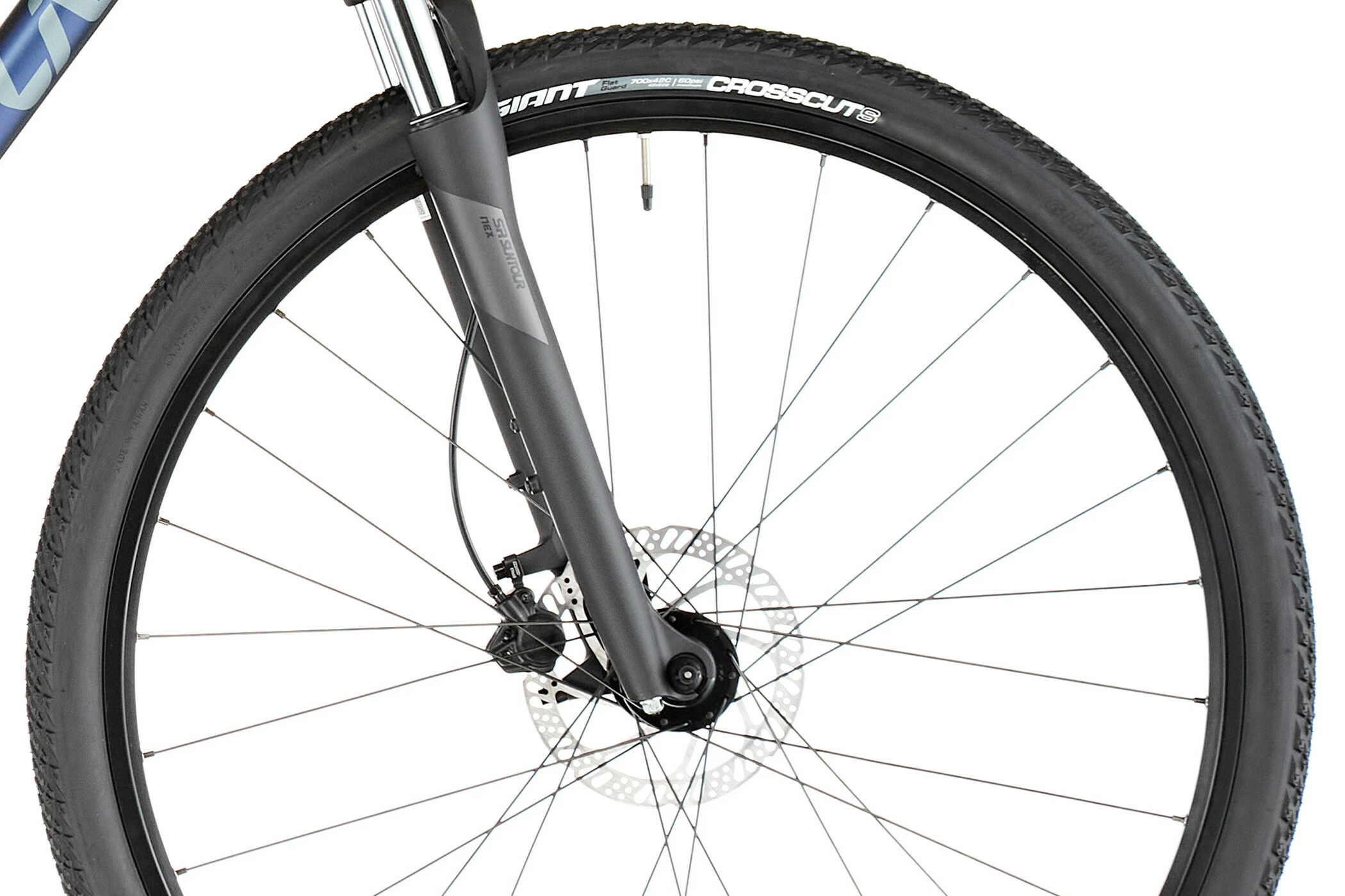 Den affjedrede forgaffel giver komfort og kontrol, når du forlader asfalten for at køre på grus og stier.